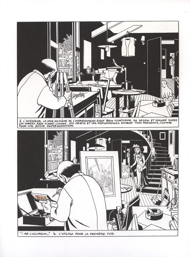 Here is an example of this approach from Marc–Antoine Mathieu’s graphic novel Le Dessin.